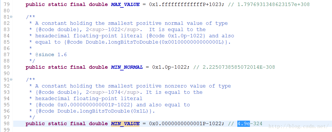 此外,该类还提供多个方法,可以将 double 转换为 String,将 String 转换为 double,也提供了其他一些处理 double 时有用的常量和方法。