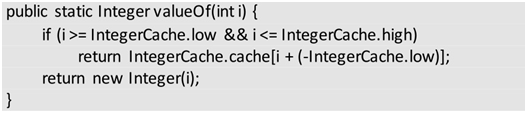 如果不明就里很容易认为两个输出要么都是 true 要么都是 false。首先需要注意的是 f1、f2、f3、f4 四个变量都是 Integer 对象引用,所以下面的==运算比较的不是值而是引用。装箱的本质是什么呢?当我们给一个 Integer 对象赋一个 int 值的时候,会调用 Integer 类的静态方法 valueOf,如果看看 valueOf 的源代码就知道发生了什么。