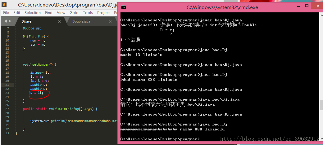 一条语句中,Integer无法转换为Double,因为这要先拆箱子再升级再装箱,涉及到3步操作,不符合上述规律。。。。。
