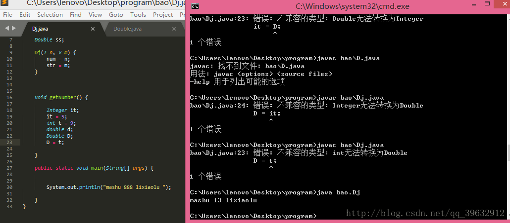 一条语句中,int无法转换为Double,因为这里涉及到先升级再装箱子,拆装箱一定要在升降级前面。。。。。