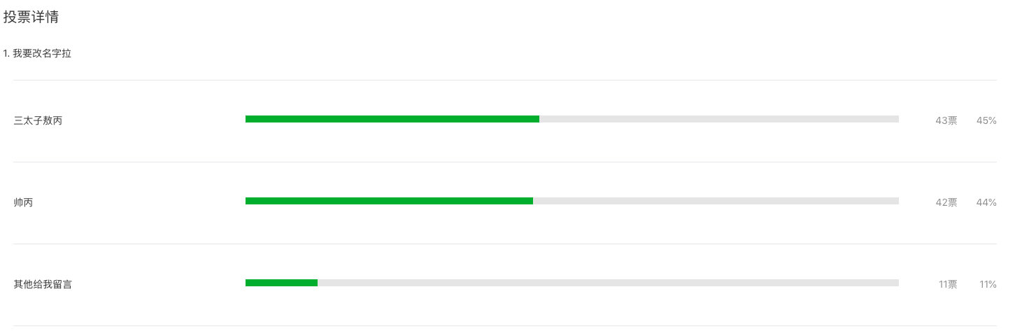 上周还发起了一个投票大家记得么?就是我要修改我公众号的名字,下面是投票的结果