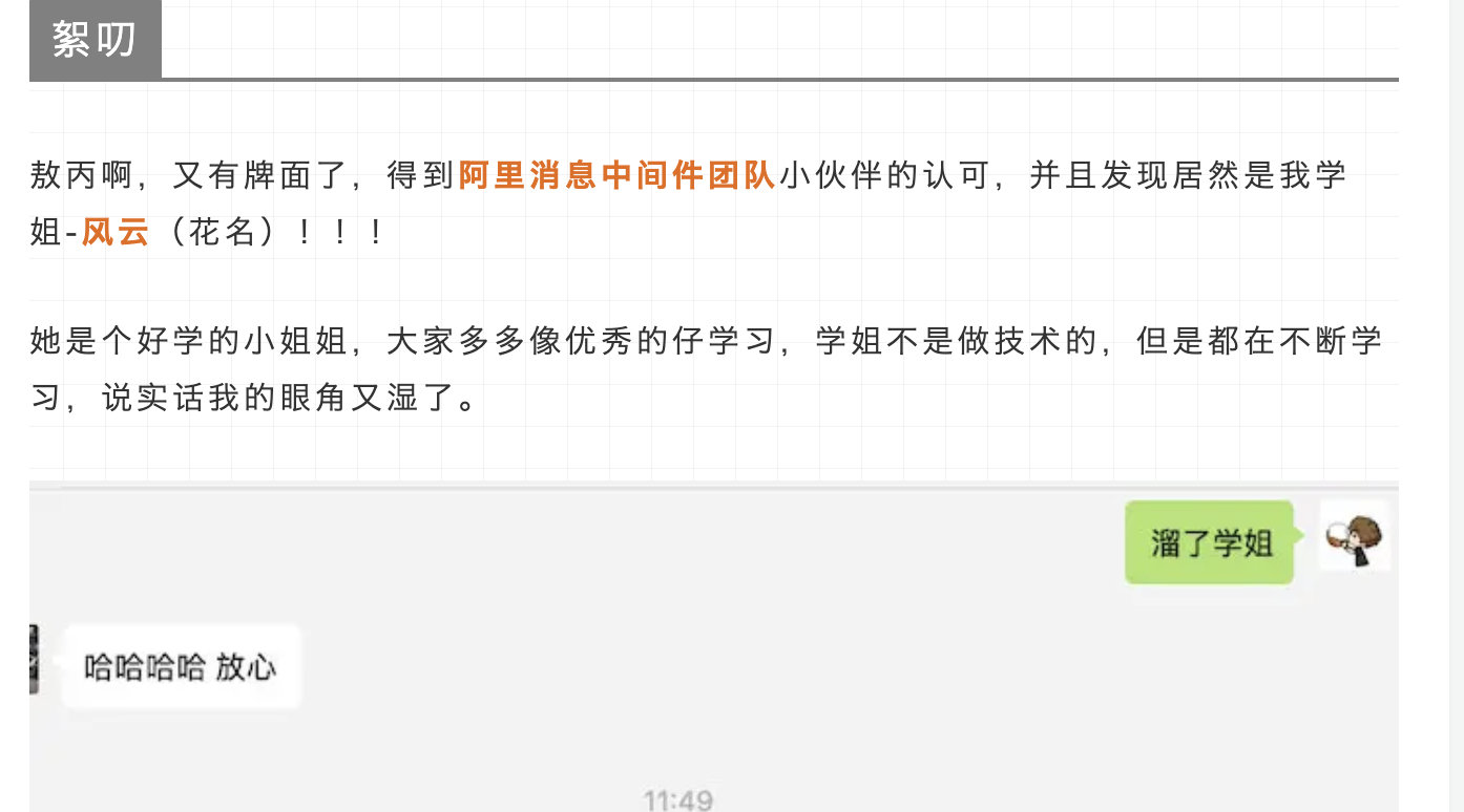 不过最开心的是得到了阿里云消息中间件团队的认可,小姐姐很好学