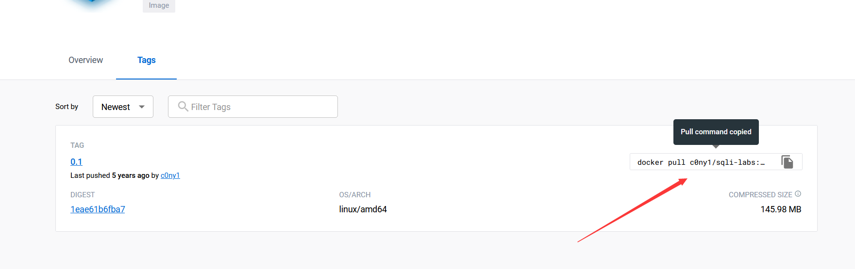 https://hub.docker.com/r/c0ny1/sqli-labs/tags