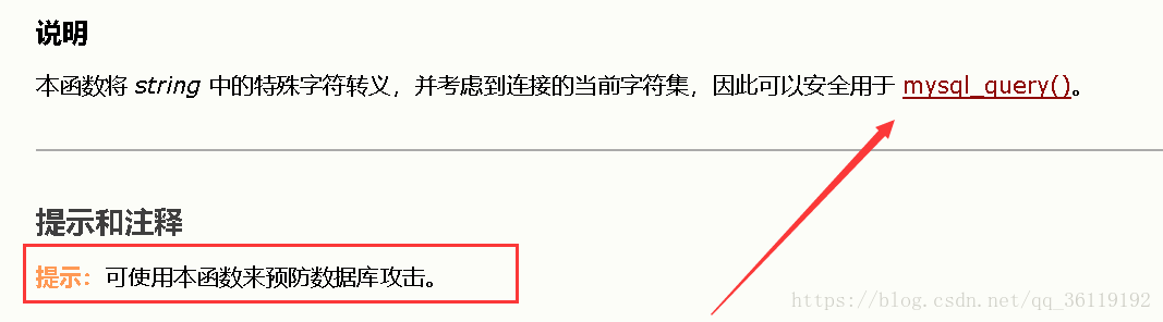 发现了这个宽字符注入,于是很多程序猿把 addslashes() 函数换成了 mysql_real_escape_string() 函数,想用此来抵御宽字节的注入。因为php官方文档说了这个函数会考虑到连接的当前字符集。
