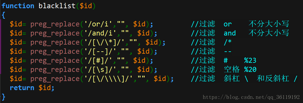 虽然预编译可以有效预防SQL注,但是某些特定场景下,可能需要拼接用户输入的数据。这种情况下,我们就需要对用户输入的数据进行严格的检查,使用正则表达式对危险字符串进行过滤,这种方法是基于黑名单的过滤,以至于黑客想尽一切办法进行绕过注入。基于正则表达式的过滤方法还是不安全的,因为还存在绕过的风险。