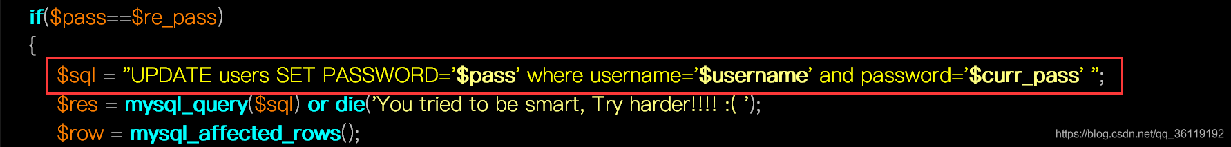 那么,为什么会这样呢?我们查看修改密码页面源代码,发现这里存在明显的SQL注入漏洞