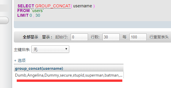 显然太麻烦了,因为只返回一个结果 利用之前的group_concat()将结果放在一起返回