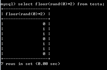 1. 查询第一条记录,rand(0)得键值0不存在临时表,执行插入,此时rand(0)再执行,得1,于是插入了1。