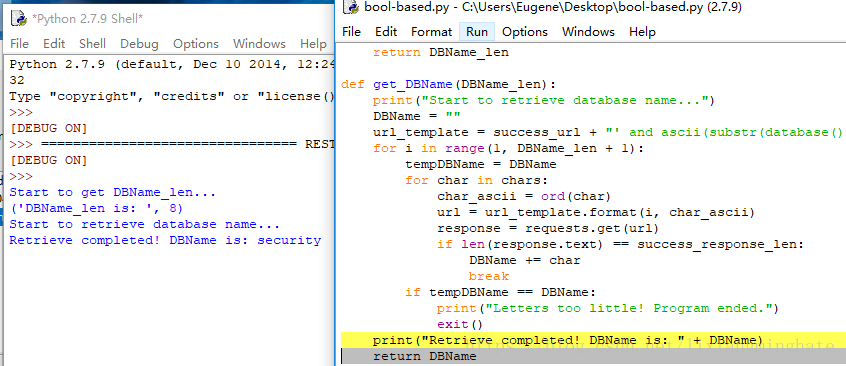 好,结合这些的信息,来看下获取数据库名字的脚本:
