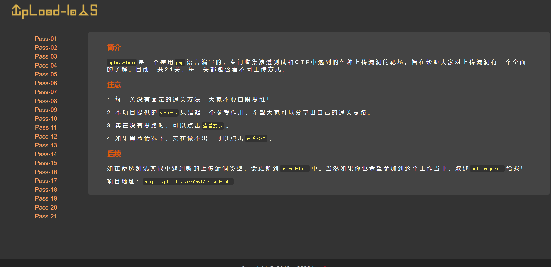 接着在浏览器中输入http://127.0.0.1/upload-labs/。