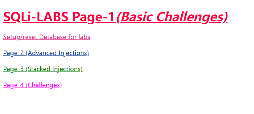 接着浏览器打开“http://127.0.0.1/sqli-labs-master/”访问首页,这个样子就ok了。