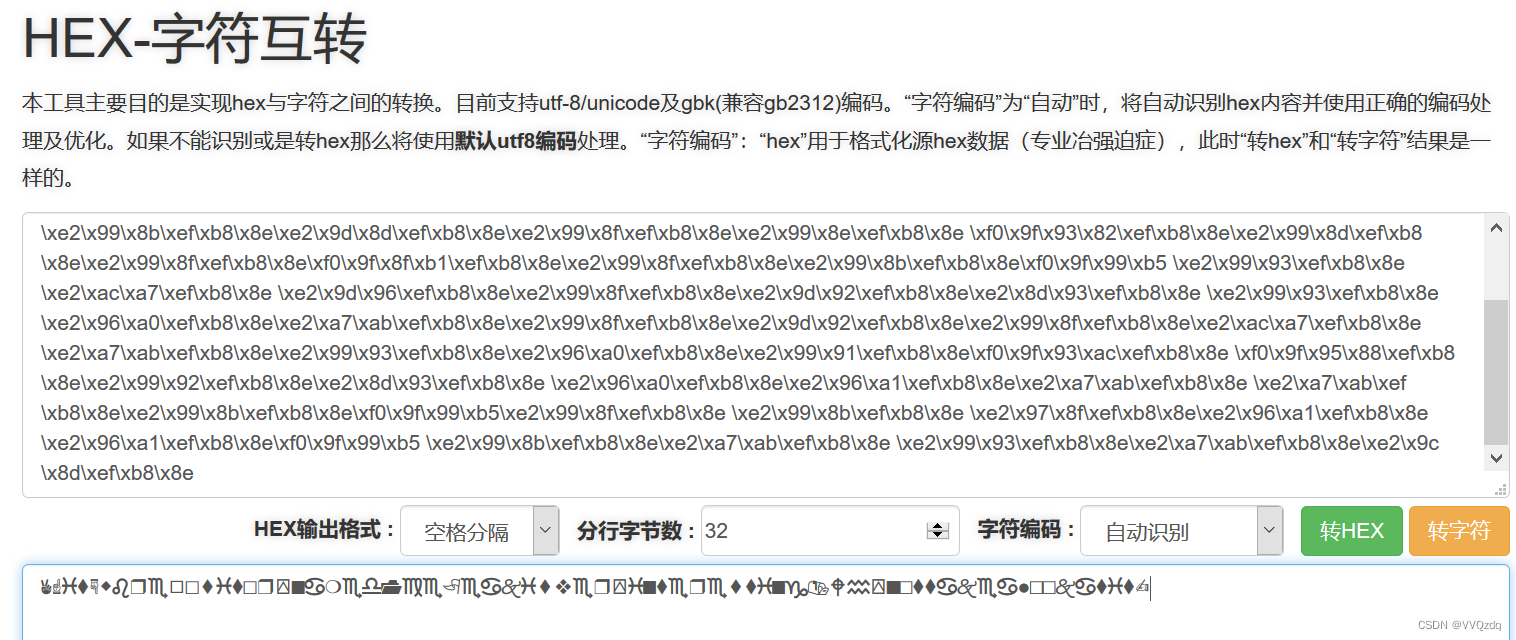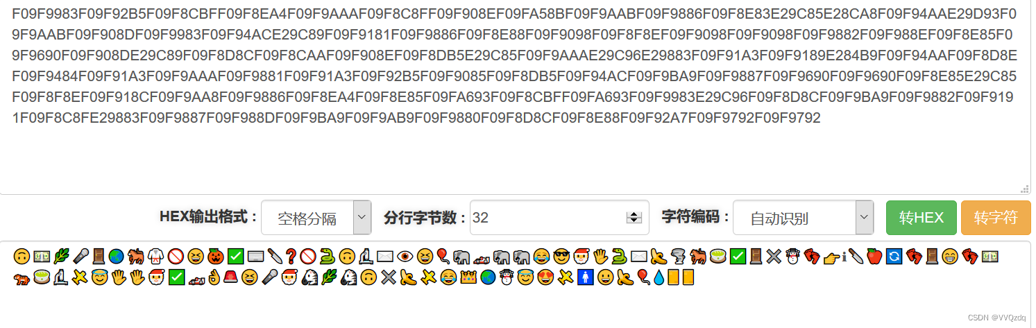 | 使用16进制在线转换网址 HEX转字符 十六进制转字符 hex gb2312 gbk utf8 汉字内码转换 - The X 在线工具 转换后得到一串表情包 |