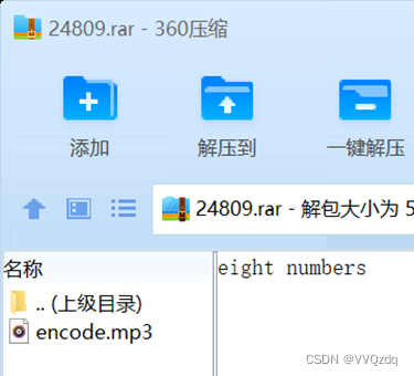 | 发现rar压缩包 解压之后是mp3文件 旁边备注提示8个数字 推测为MP3隐写 先放到16进制编辑器查看有没有线索