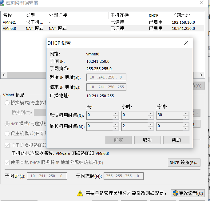 此时和虚拟机的通信可以使用nat或者桥接都可以,本文中使用了nat