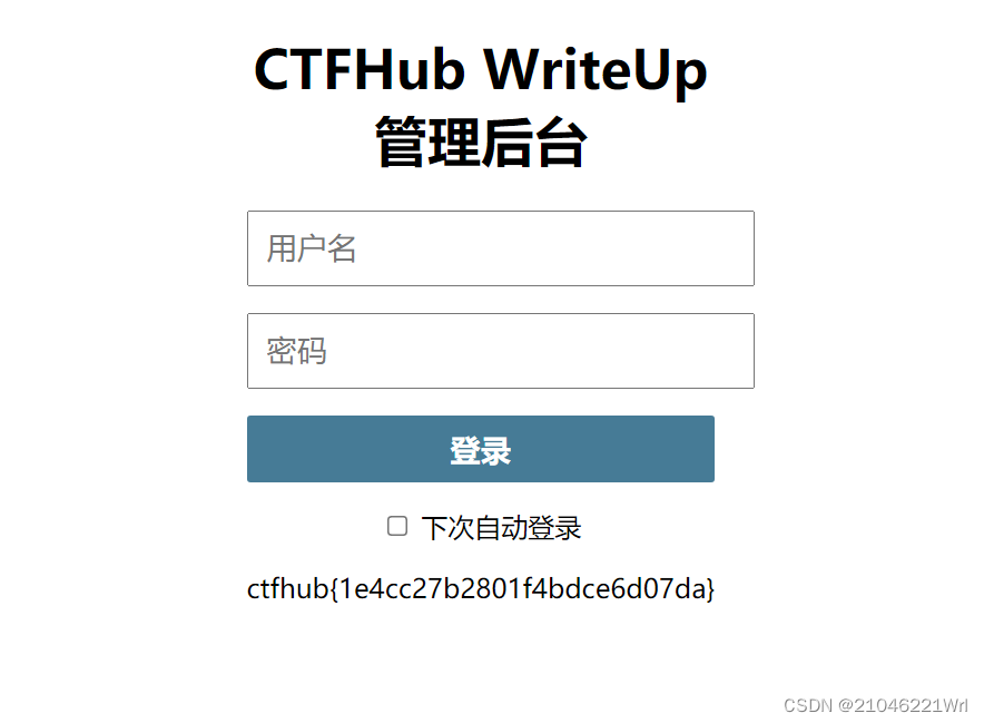 以上就是花痴小松鼠最近收集整理的关于CTFHub技能树之密码口令前言一、弱口令二、默认口令的全部内容,更多相关CTFHub技能树之密码口令前言一、弱口令二、默认口令内容请搜索靠谱客的其他文章。