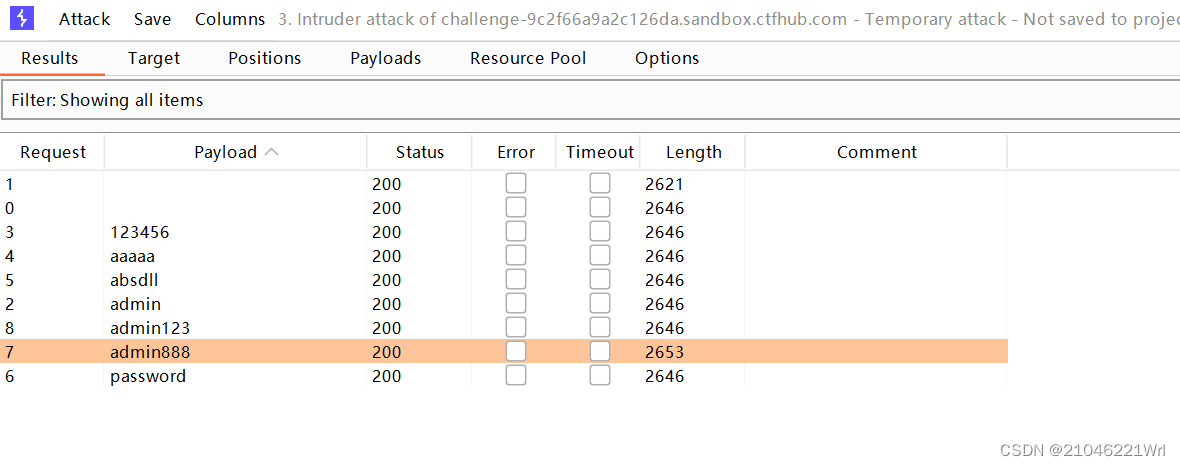 结果2653那行,密码显示为admin888,登陆得到flag