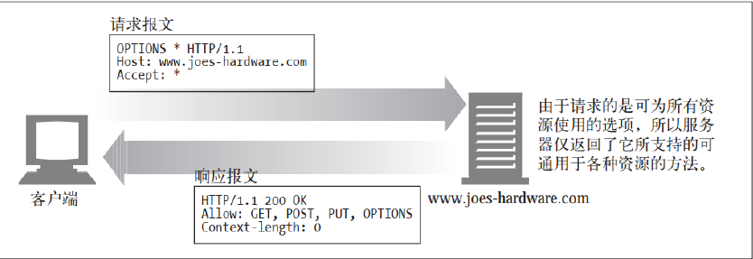 OPTIONS 方法请求 Web 服务器告知其支持的各种功能。 可以询问服务器通常支持哪些方法, 或者对某些特殊资源支持哪些方法。