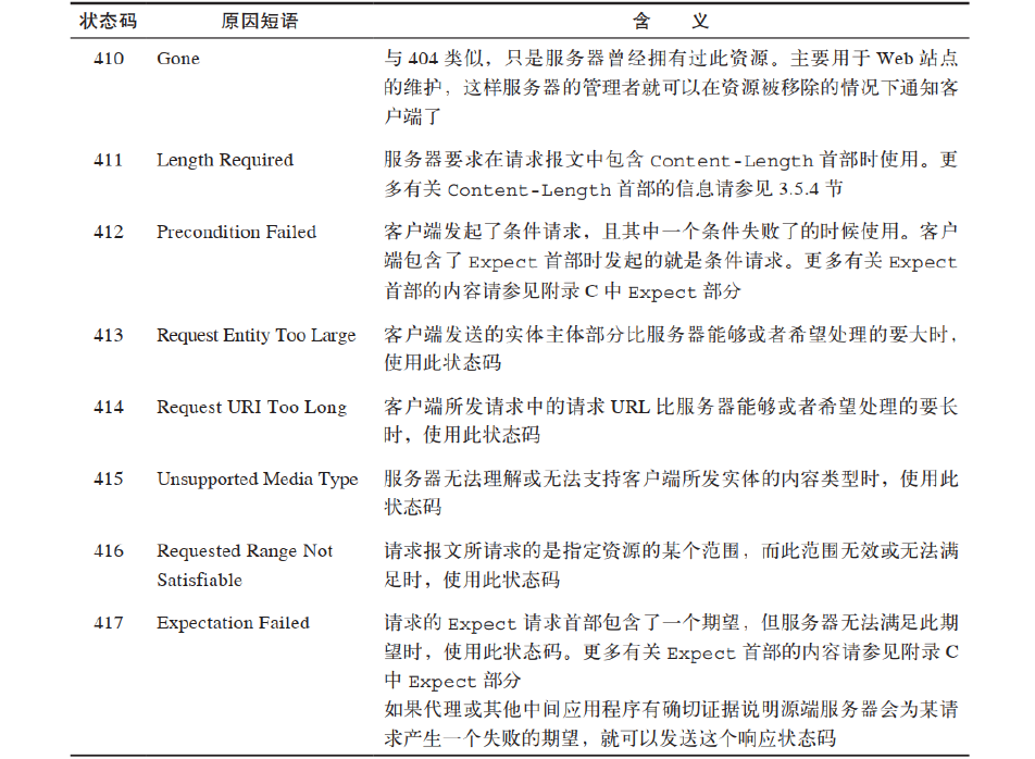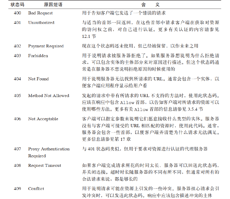 - 400 到 499 之间的代码表示客户端的请求出错