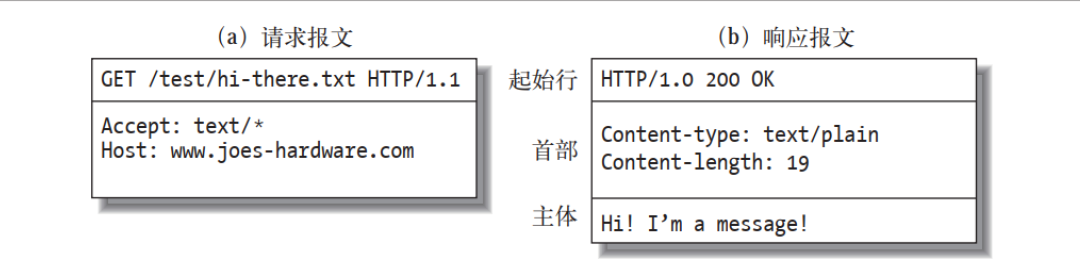 (1)所有的 HTTP 报文都可以分为两类: 请求报文(request message) 和响应报文(response message)。 请求报文会向 Web 服务器请求一个动作。响应报文会将请求的结果返回给客户端。 请求和响应报文的基本报文结构相同