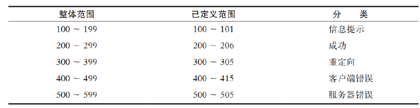 - 500 到 599 之间的代码表示服务器出错