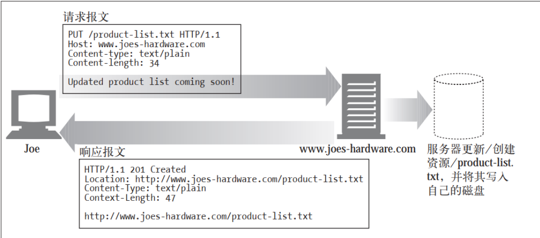 与 GET 从服务器读取文档相反, PUT 方法会向服务器写入(更新)文档。