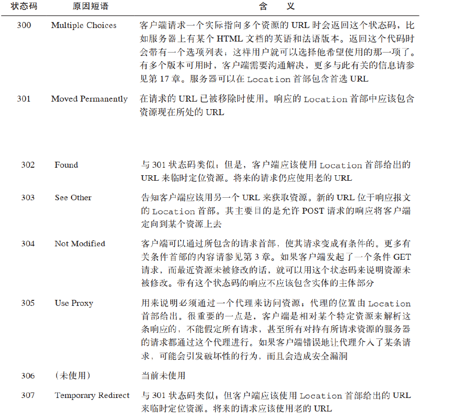 重定向状态码与原因短语: