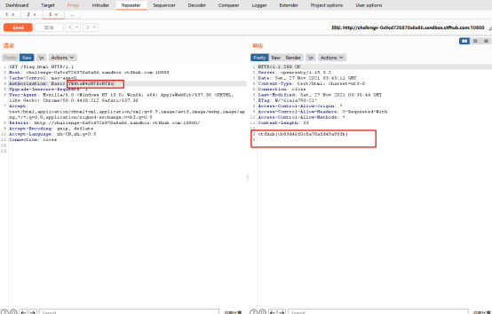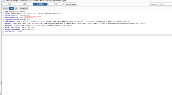 然后进行抓包,发现了Authorization:后面有一串BASE64的编码