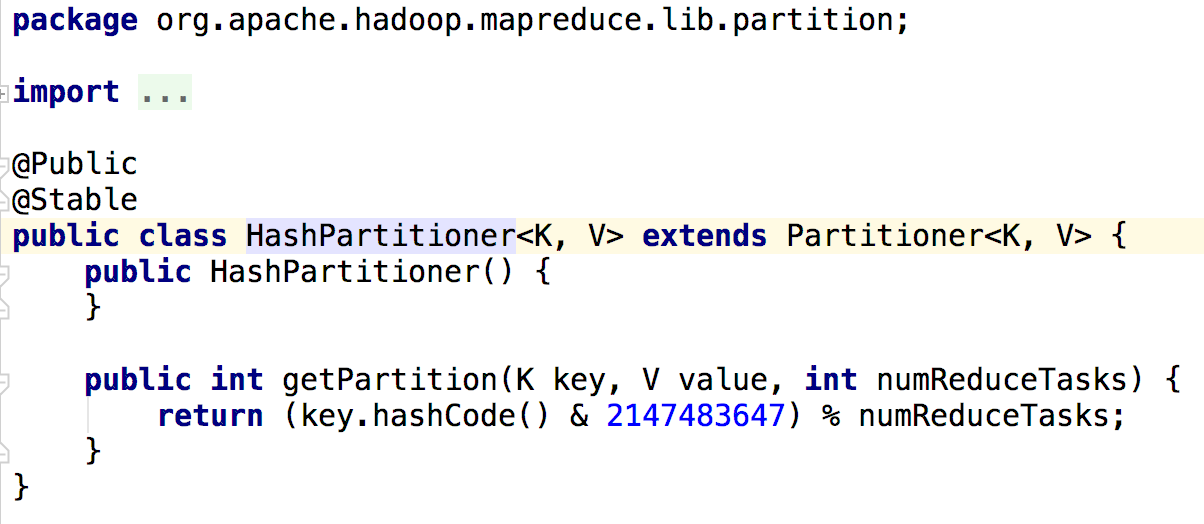 HashPartitioner是MapReduce默认的分区规则