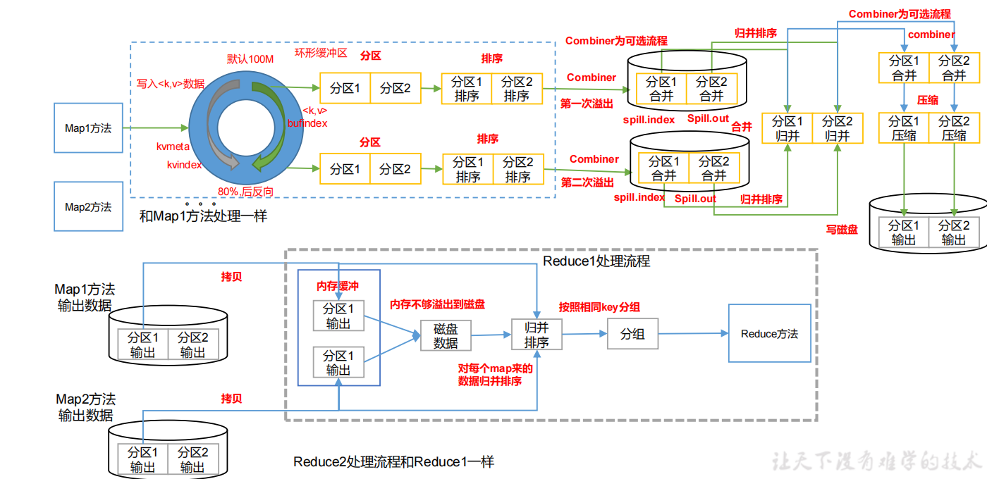 (2)缓冲区的大小可以通过参数调整,参数:mapreduce.task.io.sort.mb 默认 100M