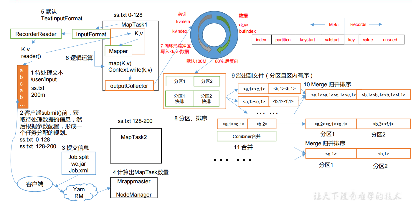 (2)MapTask:负责 Map 阶段的整个数据处理流程。