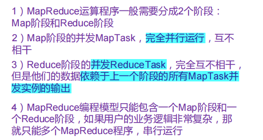 Map 阶段并行处理输入数据;Reduce 阶段对 Map 结果进行汇总
