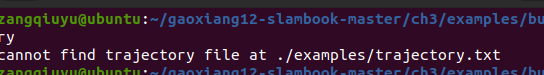 2.显示相机位姿实验找不到相机运动轨迹,因为观察外边的目录结构,就发现这个txt文件是存在examples下面的,但是执行的时候,是在examples/build下执行的。所以要先… 退出build 再 … 退出examples 然后/examples/trajectory.txt