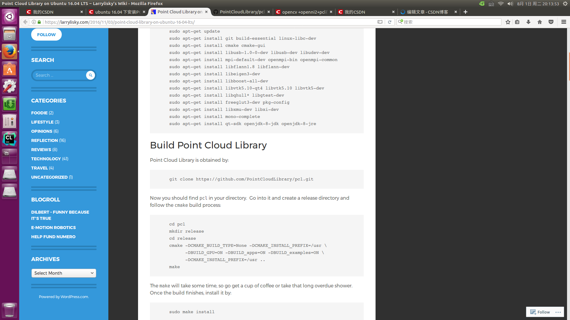 https://larrylisky.com/2016/11/03/point-cloud-library-on-ubuntu-16-04-lts/