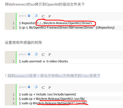 中介绍的方法,安装了opencv和openni2,需要注意的是方法中的几个地址,