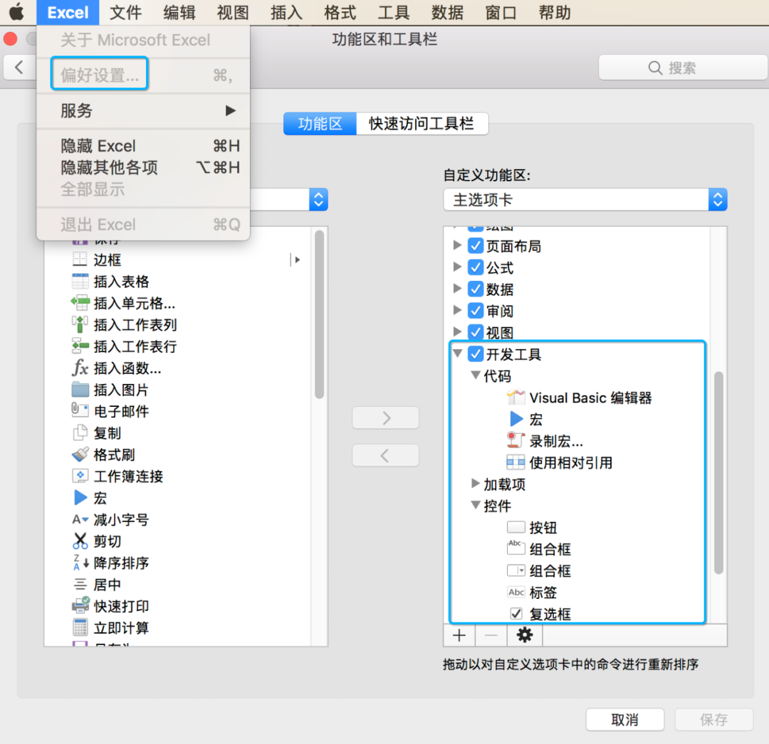 然后需要将Excel的开发工具打开,后面会使用它插入一些元素。