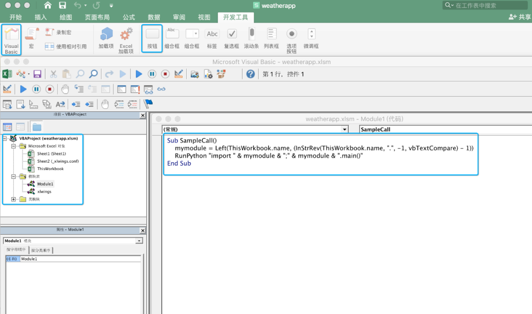 也就意味着,修改weatherapp.py文件的代码,即可实现Excel的交互操作。