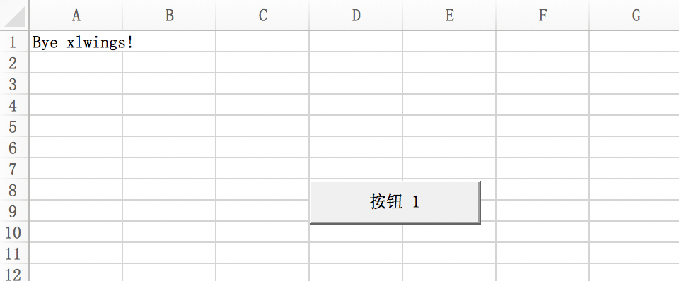 再次点击,A1单元格内容变为Bye xlwings!。