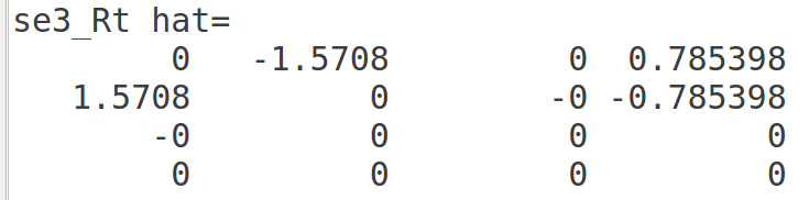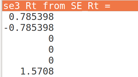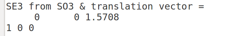 这里输出SO(3)的时候,实际上是以so(3)形式输出,并且其输出的值和旋转矢量相对应,即李代数就是旋转矢量。