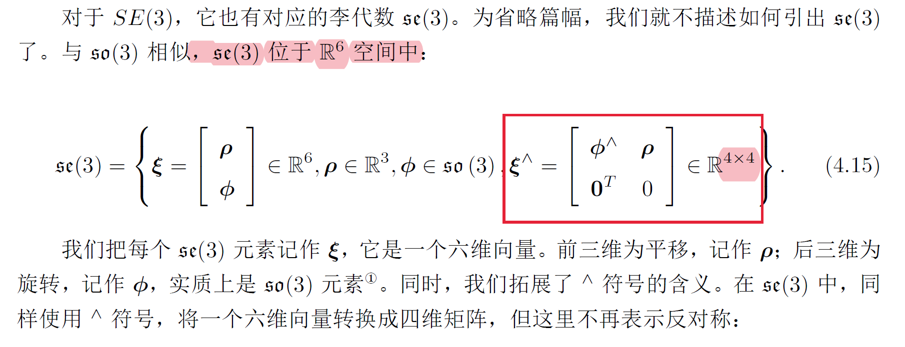 注意:se(3)对应的反对称矩阵是四维的