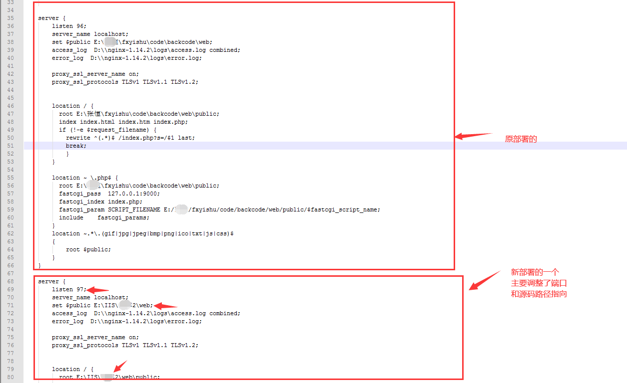 将现有的配置复制一份,粘贴到现有的代码后面。修改端口号,修改代码指向路径。