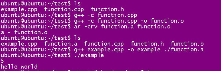 linux下用生成静态库的命令 ar 处理 function.o 文件生成静态库文件