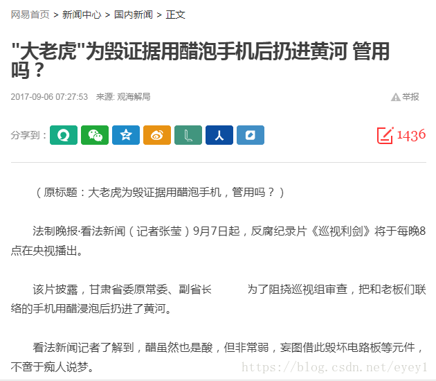 先看一下2017年旧闻:《"大老虎"为毁证据用醋泡手机后扔进黄河 管用吗?》