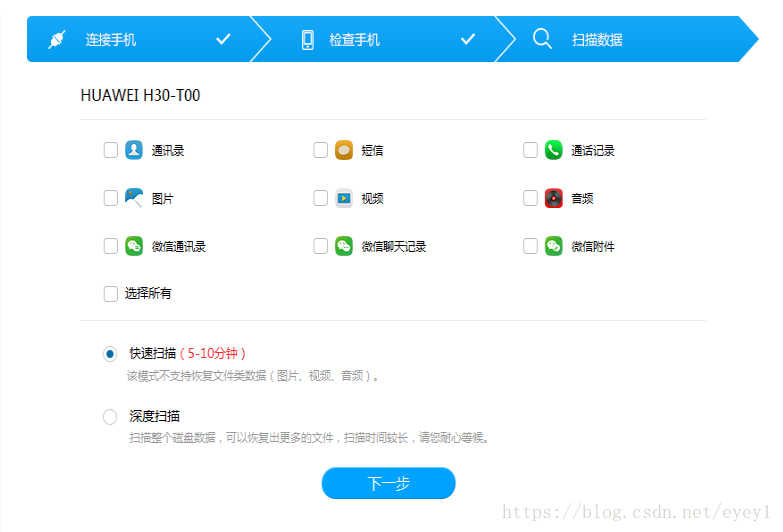 这时可以用第二种方法,通过手机数据恢复的软件来恢复: