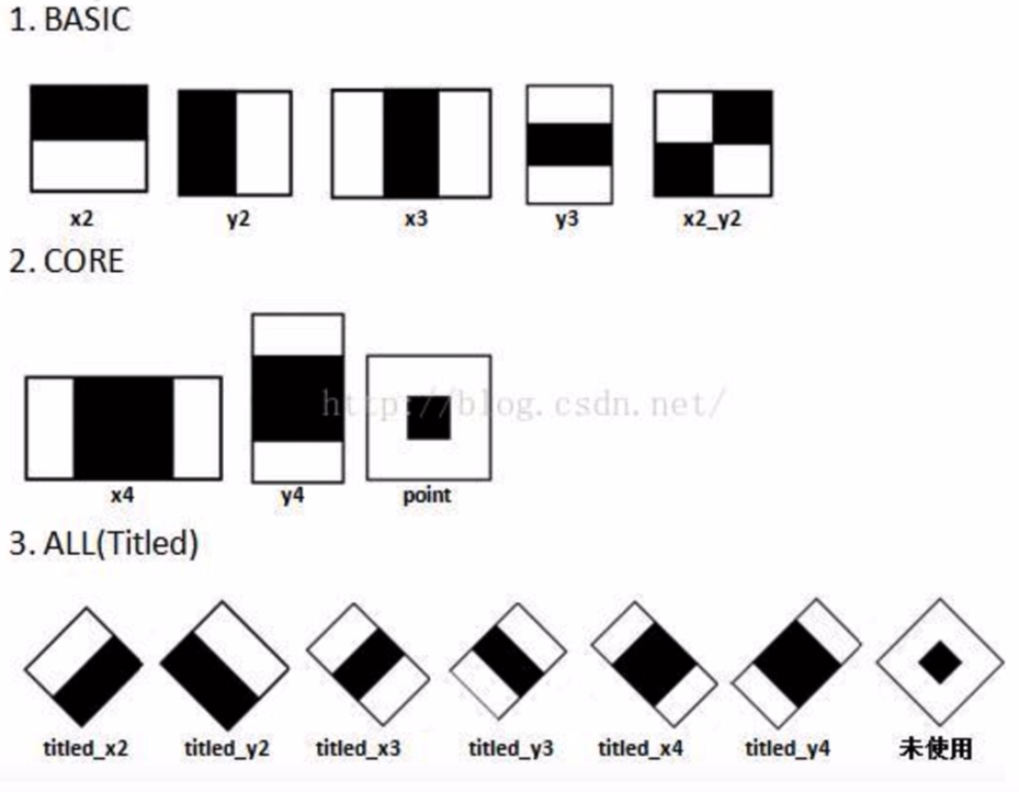 Haar特征可用于图像任意位置,大小也可以任意改变,所以矩形特征值是矩形模版类别、矩形位置和矩形大小这三个因素的函数。故类别、大小和位置的变化,使得很小的检测窗口含有非常多的矩形特征。