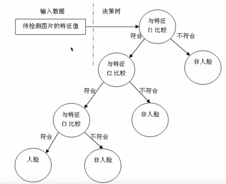 得到图像的特征后,训练一个决策树构建的adaboost级联决策器来识别是否为人脸。