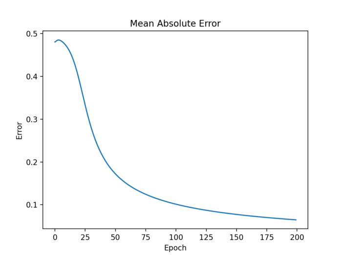 除了向前和向后传播之外,我们还将平均绝对误差(MAE)保存到一个错误列表中,以便日后观察平均绝对误差在训练过程中是如何演变的。