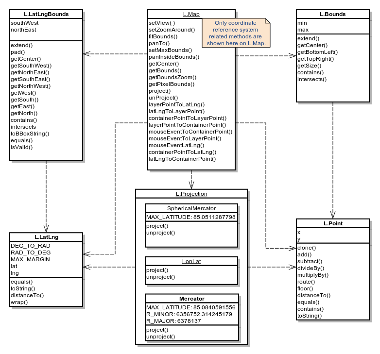 unproject( <Point> point, <Number> zoom? ) | LatLng | 将像素坐标系投影到指定缩放级别的地理坐标系中。(默认为当前的缩放级别). |