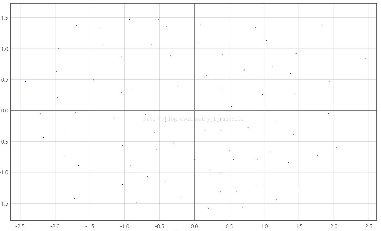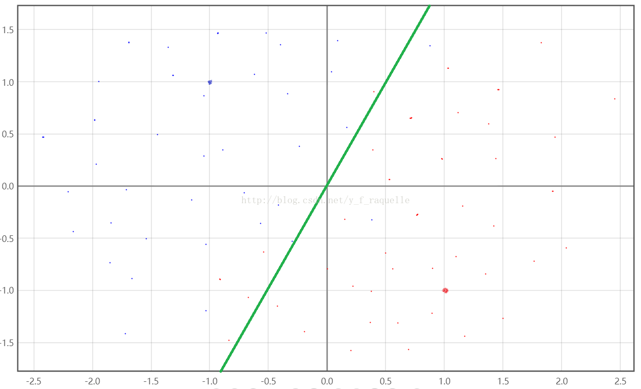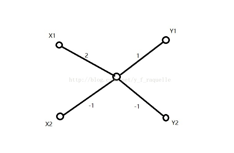 此时有两个测试数据P1(-1,1)、P2(1,-1),根据神经网络模型可以得到P1:Y1=-3,Y2=3;P2:Y1=3,Y2=-3。我们约定哪个输出值大就属于哪一类那么P1为B,P2为A。